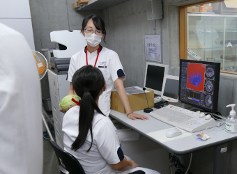 初めに、学長挨拶や大学紹介、さらに入試概要説明を行いました。その後に行われた学内ツアーでは、少人数の班ごとに分かれて、模擬授業や実際に実習で使用している機器の見学・体験をしていただきました。
